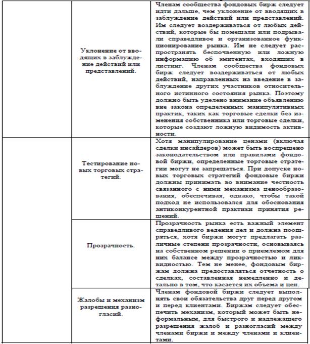 Таблица 10. Повсеместно принятые принципы ведения бизнеса по ценным бумагам