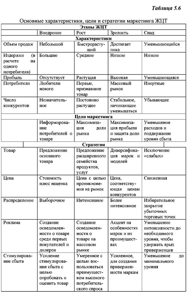С учетом этих критериев, выделяют следующие этапы жизненного цикла товара: