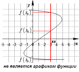 Графиком функции называется множество всех точек на координатной плоскости, абсциссы которых равны значениям аргумента, а ординаты - соответствующим значениям функции. Если некоторому значению x=x0 соответствуют несколько значений (а не одно) y, то такое соответствие не является функцией. Для того чтобы множество точек координатной плоскости являлось графиком некоторой функции, необходимо и достаточно, чтобы любая прямая параллельная оси Оу, пересекалась с графиком не более чем в одной точке.