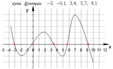 Значения х, при которых y=0, называется нулями функции. Это абсциссы точек пересечения графика функции с осью Ох.
