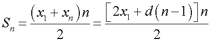 — разность арифметической прогрессии. Для арифметической прогрессии справедливы хорошо известные соотношения для формулы