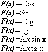 | Функция | Первообразная | Функция | Первообразная |