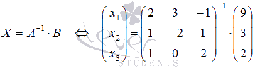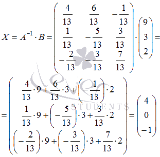- матрицу неизвестных переменных, умножив обратную матрицу