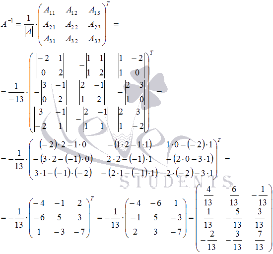 с помощью матрицы из алгебраических дополнений элементов матрицы А (при необходимости смотрите статью методы нахождения обратной матрицы):