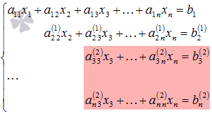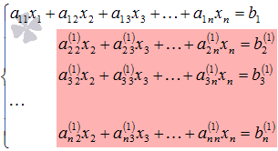 Далее действуем аналогично, но лишь с частью полученной системы, которая отмечена на рисунке