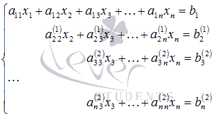 . Таким образом, переменная x2 исключена из всех уравнений, начиная с третьего.