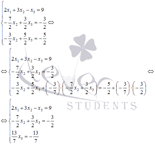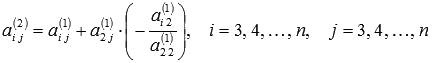Теперь из третьего уравнения исключим x2, прибавив к его левой и правой частям левую и правую части второго уравнения, умноженные на