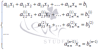 Так продолжаем прямой ход метода Гаусса пока система не примет вид