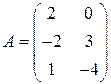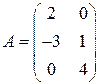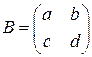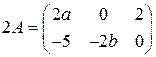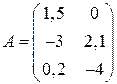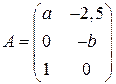 Элемент матрицы А в первой строке и первом столбце обозначается а 11 и равен в данном случае а, т.е. а 11= а. Элемент в первой строке и втором столбце а 12=0. Далее, а 13=1, а 21=-2,5, а 22=- b, а 23=0.