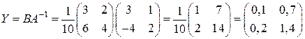 Уравнение YА=В, если матрица А имеет обратную, решается по формуле Y=ВА- 1. Получаем: