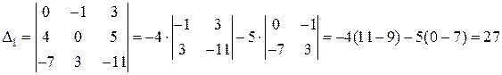 получаем из D заменой столбца коэффициентов при переменной y на столбец свободных коэффициентов: