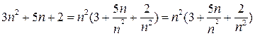Из трех слагаемых числителя быстрее всего возрастает слагаемое старшей степени, т.е. 3n2. Вынесем за скобки n2: