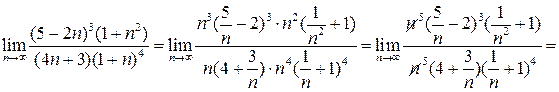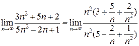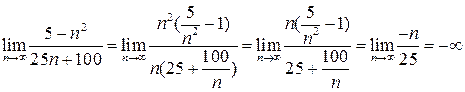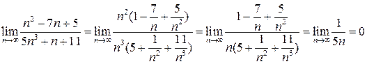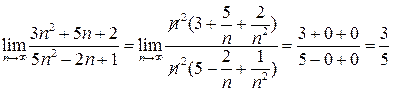 при n®¥ стремятся к 0 и, таким образом, после сокращения дроби на n2, имеем: