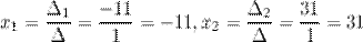 заменой его первого столбца столбцом свободных коэффициентов. Будем иметь: