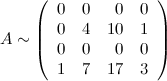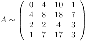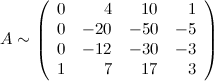 От второй строки отнимаем четвертую строку, умноженную на 4; от третьей - две четвертых: