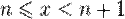 . Каждое значение x заключено между двумя положительными целыми числами: