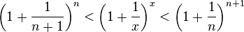 Зная, что второй замечательный предел верен для натуральных значений x, докажем второй замечательный предел для вещественных x, то есть докажем, что