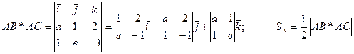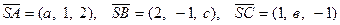 SАВС (S(-1, 1, 0), А(а-1, 2, 2), В(1, 0, с), С(0, в+1, -1)).