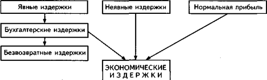 Производитель может привлекать ресурсы извне, и тогда издержки представляются в виде денежных выплат поставщикам ресурсов, а может использовать и собственные ресурсы, и тогда издержки производства представляются в виде затрат по удержанию ресурсов от альтернативного использования. Последний вид затрат не найдет отражения в бухгалтерском балансе, что будет означать занижение фактического уровня издержек производства. Поэтому различают бухгалтерские и экономические издержки производства (рис.1).