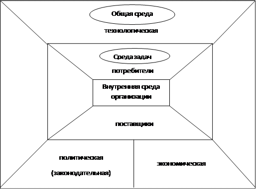 Внутренняя среда (то, что находится в сфере активного влияния менеджера): цели, структура, задачи, технологии, люди (персонал).