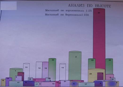 Рис. 4. Анализ растений, используемых в цветнике, по высоте (обозначения приводятся по таблице в рис.3).