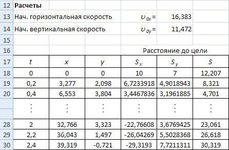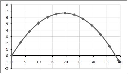 3. По столбцам В и С таблицы построить диаграмму движения (тип диаграммы – точечная). Для построения диаграммы использовать расчетные значения из диапазона В18: С30. Пример диаграммы представлен на рис. 4.