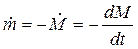 Масса ракеты во времени уменьшается, и производная М меньше нуля. Это — секундный расход массы, который обозначим через