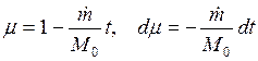 Здесь под M понимается текущее значение массы ракеты, а под V — текущая скорость. Отношение M/M 0обозначается обычно через µ (µ ≤ 1):