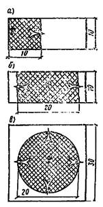 Распространяется пожар с линейной скоростью 1 м/мин. При одностороннем распространении огня на момент введения стволов (10÷15 мин) фронт пламени распространится на 10÷15 м (рисунок 1,а). При двустороннем распространении этот путь в 2 раза больше (рисунок 1, б). При ширине объекта 10 м площадь пожара в 1-м случае будет 100÷150 м2, а во 2-м - 200÷300 м2. Если объект имеет значительные размеры и пожар имеет круговое распространение, то площадь пожара достигнет 314÷706 м2 (рисунок 1, в).