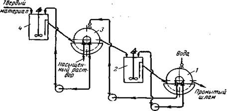 Рис.1.1. Схема противоточной промывки осадка (шлама) на барабанных
