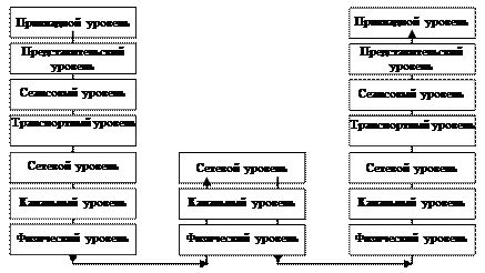 Рис. 11. В промежуточных системах пакет достигает только сетевого уровня