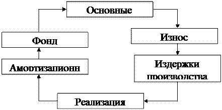 После реализации продукции в полученной выручке содержится доля амортизационных отчислений, которые образуют амортизационный фонд. За счет средств этого фонда осуществляется простое воспроизводство основных средств. Для расширенного воспроизводства требуются дополнительные источники: прибыль, кредиты (рис. 1.1).