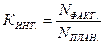 2) Коэффициент интенсивного использования оборудования, (КИНТ.) характеризующий уровень его использования по производительности: