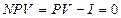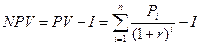 где PV – текущая стоимость; I – первоначальные инвестиции.