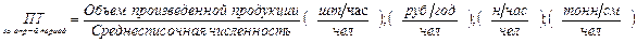 Выработка измеряется количеством продукции, произведенным одним работающим за определенный период времени (час, смена, месяц, квартал, год):
