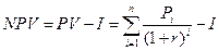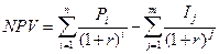 Если деньги в проект инвестировать не разово, а частями на протяжении нескольких лет, то для расчета NPV применяется формула