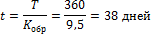 t – средняя продолжительность одного кругооборота; T – длительность отчётного периода (360 дней);