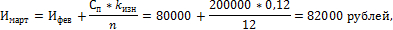 Задача. Определить сумму износа основных средств предприятия за март. Износ за февраль составил 80000 рублей. В течение февраля поступило на баланс новое оборудование с первоначальной стоимостью 200000 рублей. Норма износа 12%