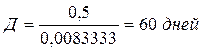 Д = 360: 6 = 60 дней, или Д = 360 * 0,5 млн / 3.0 млн = 60 дней.