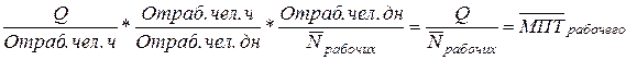 Данная модель полностью отвечает этому требованию – так, часовая производительность рабочего, умноженная на продолжительность рабочего дня, равна дневной ПТ рабочего. В свою очередь, умножая показатель дневной ПТ рабочего на продолжительность рабочего периода, получаем показатель месячной производительности труда рабочего, и.т.д.