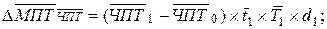 Обозначим ПТ работника символом W. Тогда относительная величина изменения средней выработки работника за период, обусловленная изменением каждого фактора, определяется отношением абсолютного изменения за счёт i-го фактора (