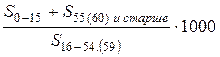 где S 0–15 – численность населения моложе трудоспособного возраста; S 55 (60) и старше – численность населения старше трудоспособного возраста; S 16-54 (59 ) – численность населения трудоспособного возраста.