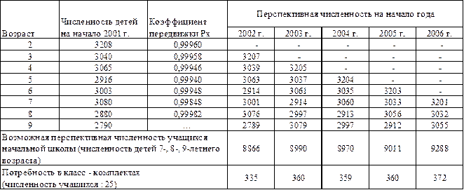 Таким образом, при сохранении существующей демографической ситуации в городе, необходимость в расширении числа ученических мест в начальной школе возникнет в городе не раньше 2006 г., когда потребуется дополнительно 12 класс – комплектов сверх имеющихся в городе. Именно к этому времени и должно быть запланировано строительство новой начальной школы.