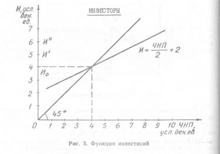 1.Функция инвестиций показана на рис. 3. Точка равновесия сложится при объеме инвестиций в 4 усл. ден. ед.