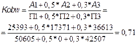 1) Общий показатель платежеспособности. С помощью этого показателя осуществляется оценка изменения финансовой ситуации в организации с точки зрения ликвидности. Данный показатель также применяется при выборе наиболее надёжного партнера из множества потенциально возможных на основе отчётности. Нормальное ограничение: Кобщ
