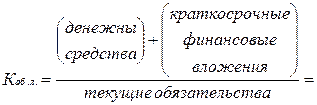 2) Коэффициент абсолютной ликвидности – показывает, какую часть текущей краткосрочной задолженности организация может погасить в ближайшее время за счёт денежных средств и привлечённых к ним финансовым вложениям. Нормальное ограничение: Каб.л.
