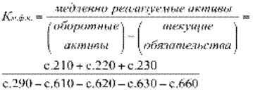 вает, какая часть функционирующего капитала обездвижена в производственных запасах и долгосрочной дебиторской задолженности. Нормальное ограничение: уменьшение показателя в динамике – положительный факт.