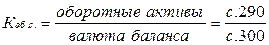 6) Доля оборотных средств в активах – зависит от отраслевой принадлежности организации. Нормальное ограничение: Коб.с.