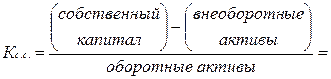 7) Коэффициент обеспеченности собственными оборотными средствами – характеризует наличие собственных оборотных средств у организации, необходимых для её текущей деятельности. Нормальное ограничение: Кс.с.
