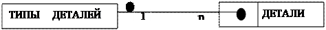 В этой диаграмме отражено правило: «каждая деталь – это деталь одного определенного типа; возможна поставка нескольких деталей одного типа, но с разными характеристиками»; в базе данных допускается информация о типах деталей, которые еще не поставляются, но «бестиповых» деталей не бывает.